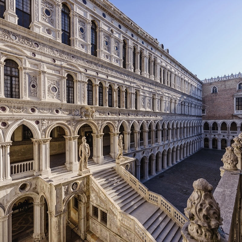 Görsel kimliğimiz, yüzyıllar boyunca Venedik'i şekillendiren malzemelerden esinlenmiştir. Güç ve dayanıklılık, İstria taş temelleriyle sembolize edilmiştir. Asfaltlanmış sokakların gri kumtaşı, sıvaların ve mozaiklerin parıldayan altın rengiyle tezat oluşturarak hem yaratıcı hem de kararlı bir halkı yansıtır.