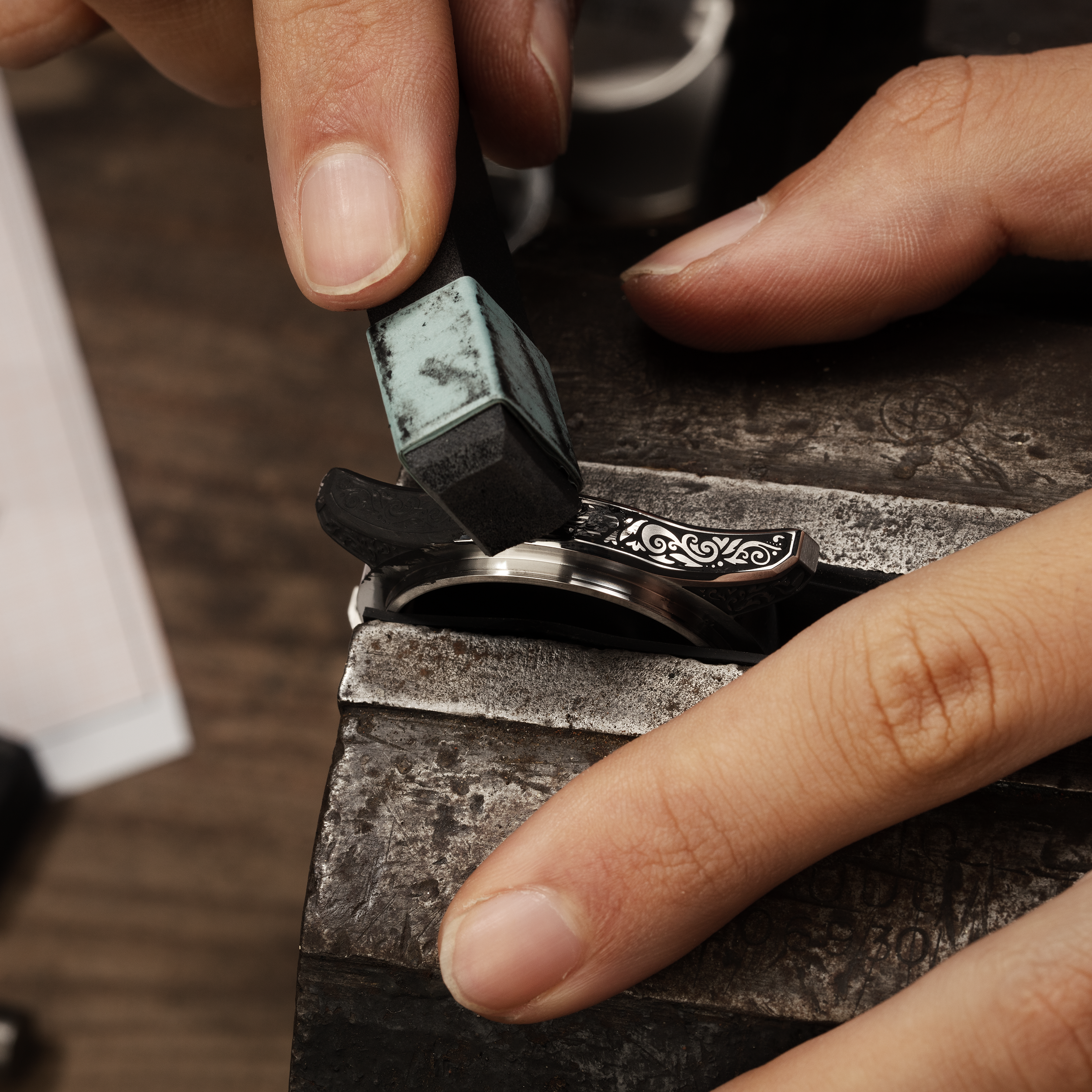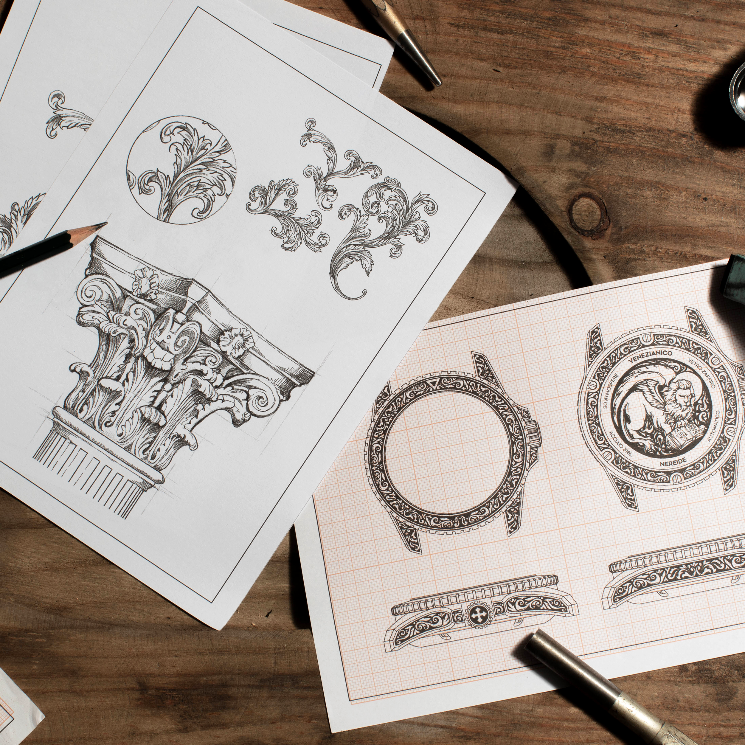 Estetik araştırmamız, klasik ve Rönesans sanatının köklerine odaklandı ve bu süreçte Nereide Acquaforte kasasının dekorasyonunda ana motif olarak akantus yapraklarını seçtik. Güzellik ve uyumun sembolü olan akantus, Antik Yunan'da sıkça kullanılmış ve daha sonra Rönesans'ın büyük ustaları tarafından yeniden canlandırılmıştır. Bu unsuru gelenek ve modernliği harmanlayarak özenle yeniden yorumladık ve sanat ile zanaata duyduğumuz tutkuyu yansıtan, rafine ve zamansız estetiğe sahip bir saat tasarladık.