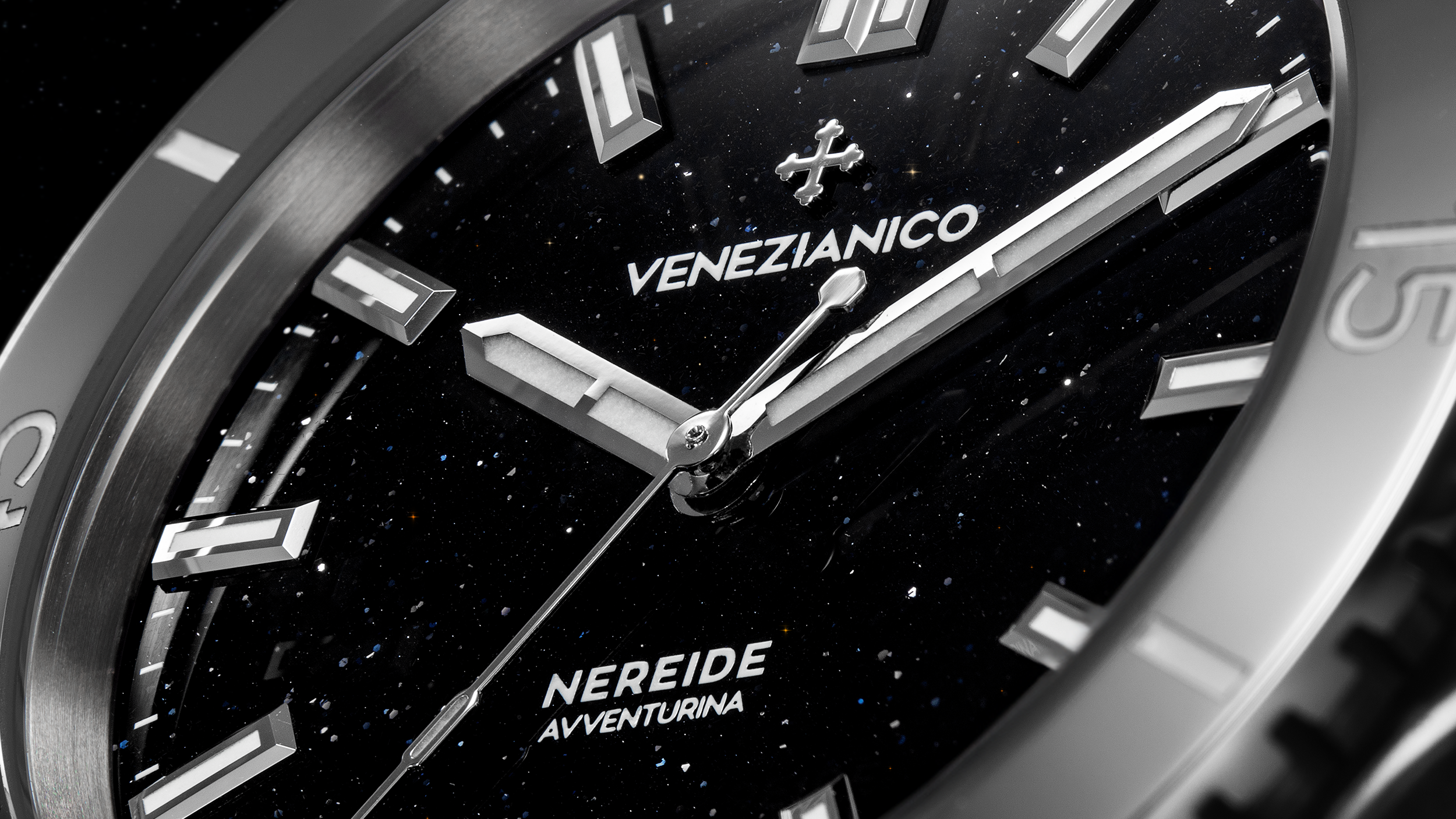 Nereide Avventurina, adını 17. yüzyılda Venedik'te keşfedilen ve gece gökyüzündeki yıldızları andıran ışıltılı yansımalar oluşturan aventurin camından alır. 39mm çapında 316L paslanmaz çelik kasası, çizilmeye karşı dayanıklı tungsten bezeli ve 200 metreye kadar su geçirmezlik özelliğiyle hem şık hem de dayanıklıdır. İsviçre üretimi Sellita SW200-1 otomatik mekanizması ve İtalyan yapımı kauçuk kayışıyla konforlu bir kullanım sunar.