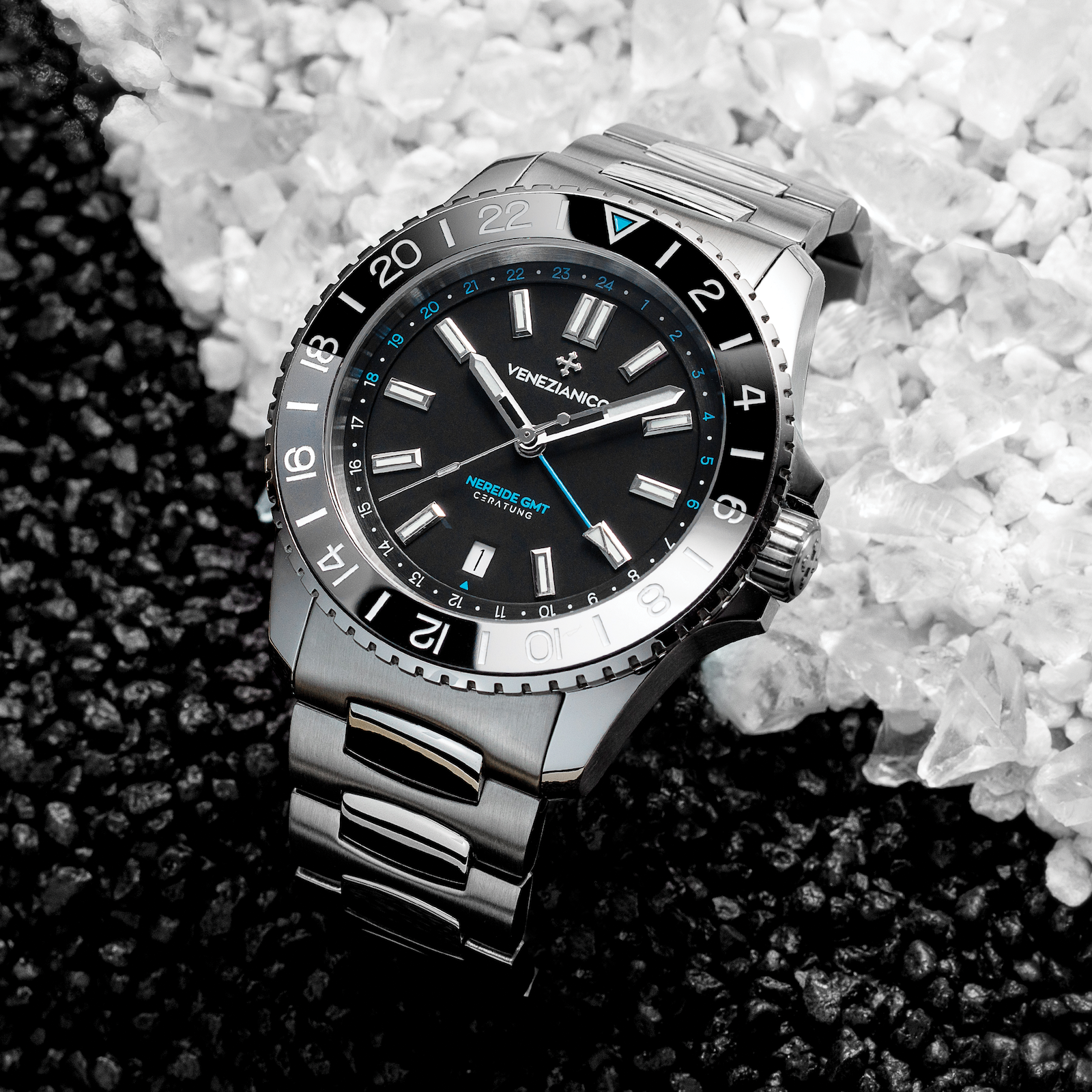 Nereide GMT Ceratung™, aynı bezel insert’ünde hem seramik hem de tungsten kullanan ilk saat olma özelliğini taşıyor.
