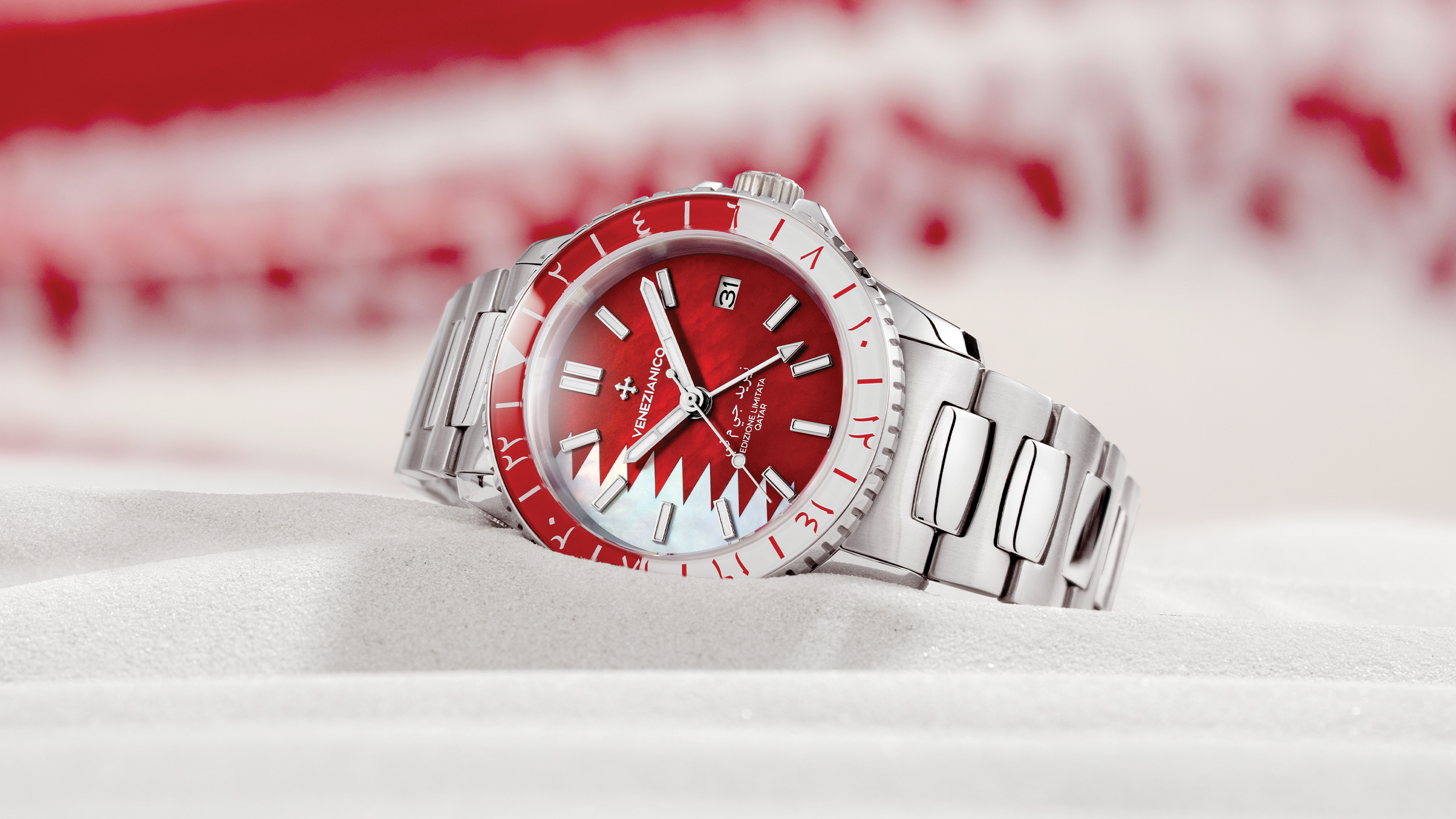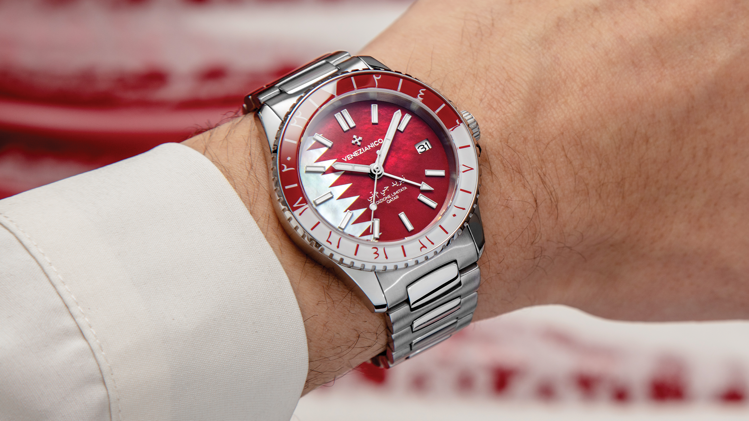 Sedefin büyüleyici ışıltısı, Katar bayrağının beyaz ve kırmızı renklerinin derinliğini ve kontrastını vurgular. Bu ikili yapı, çizilmeye dayanıklı BK7 camdan üretilmiş çerçevede de tekrar eder ve bu çerçevede yer alan Arap rakamlı indeksler, saatin ilham kaynağını öne çıkarır.