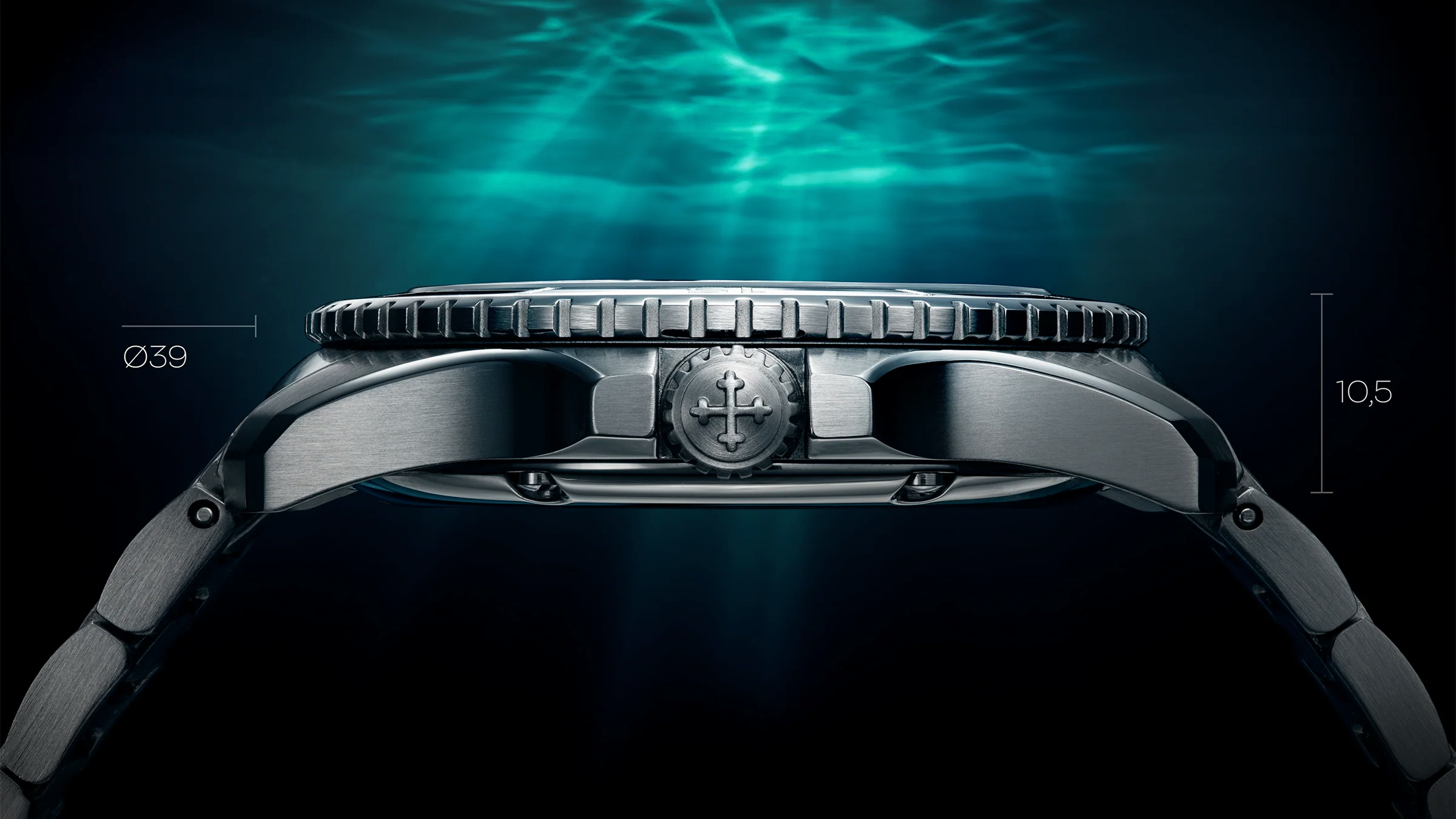 Ø39 mm, lug to lug 45.50 mm, toplam kalınlık 10.5 mm