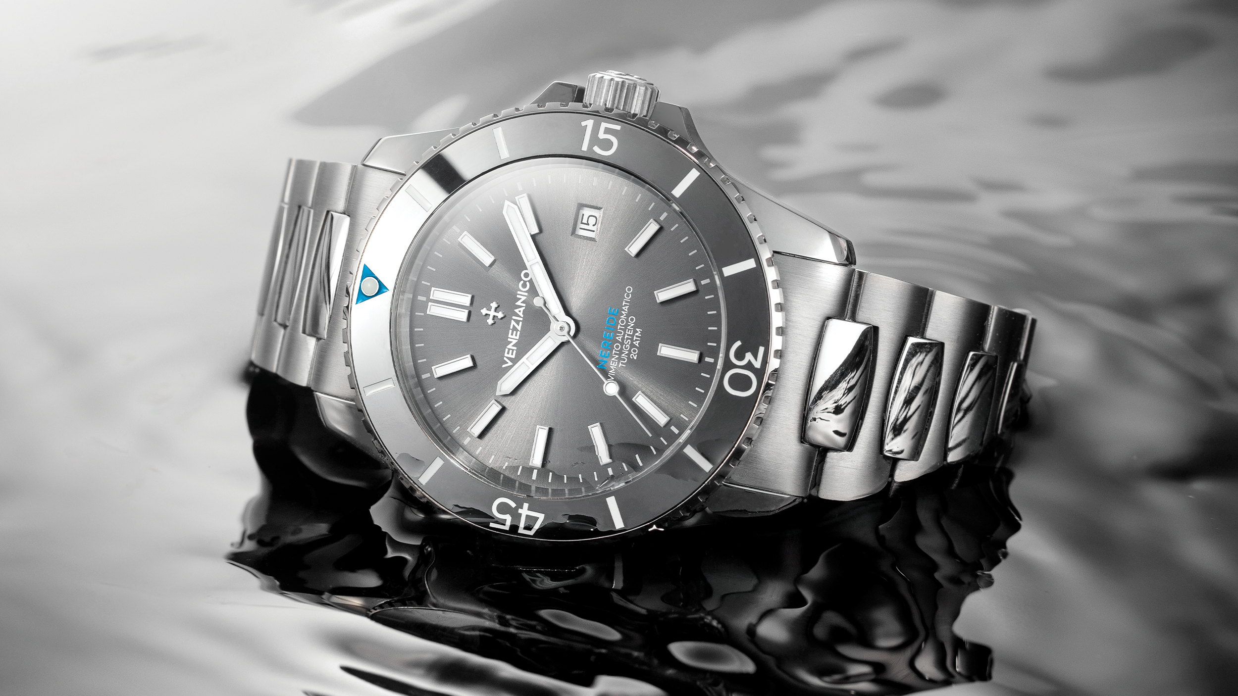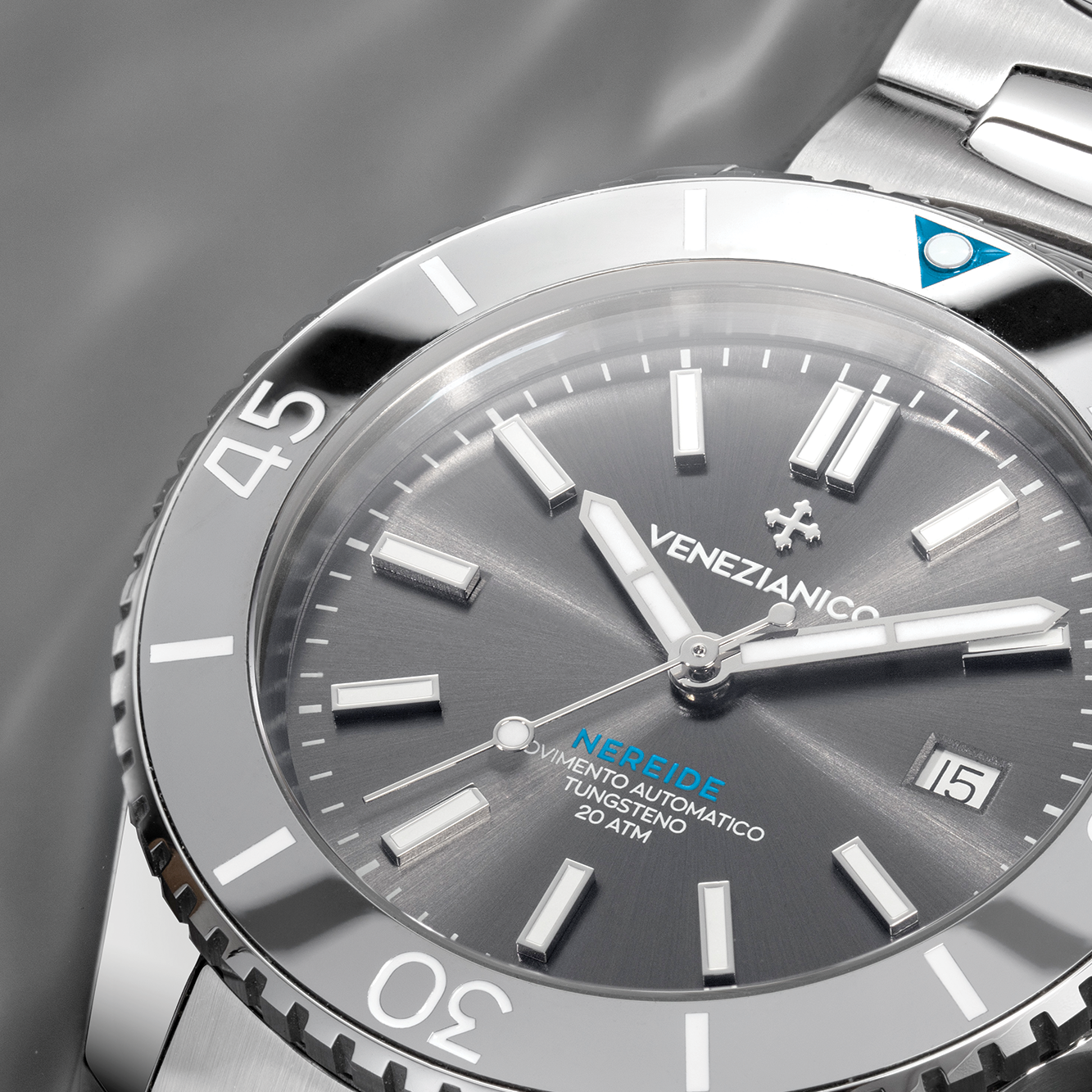 200 metreye kadar su geçirmezlik sunan dalış saatimiz, adını Venedik denizcilik teknolojisinin son harikalarından biri olan Nereide denizaltısından alıyor. Dayanıklılığıyla öne çıkan bu model, güçlü darbelere karşı üstün direnç gösterecek şekilde tasarlandı ve su sporlarıyla uğraşanlar için ideal bir tercihtir.