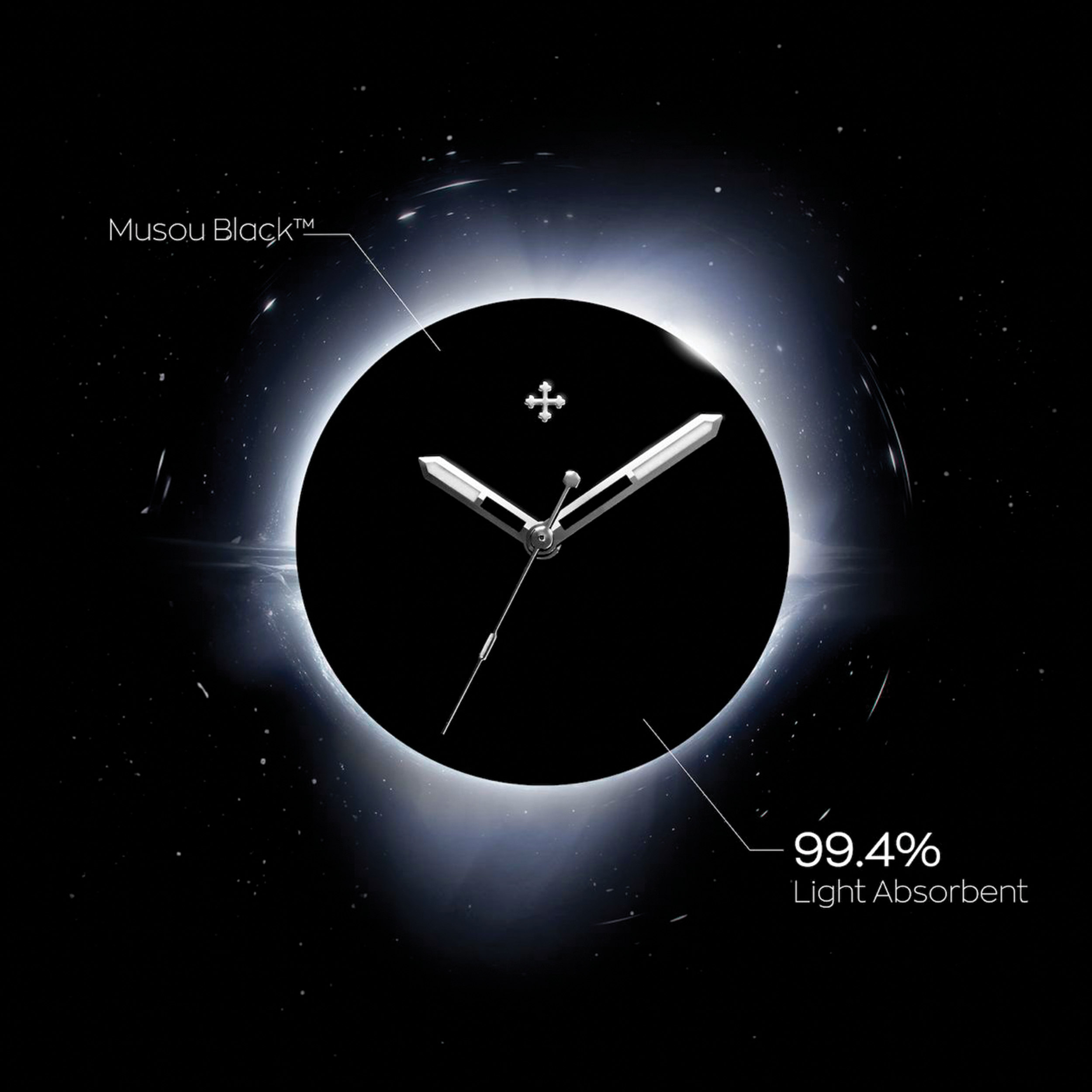 Bu saat, minimalizmi ve sportifliği zamansız bir tasarımda bir araya getiriyor. Kadranındaki mutlak siyahlık, ışığın %99,4'ünü emebilen özel Japon Musou Black™ boyasının kullanımıyla elde edilmiştir ve unutulmaz bir görsel deneyim sunar.